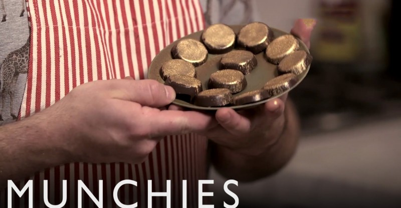 4:26 what hte fuck? All you did was melt chocolate and then color it gold