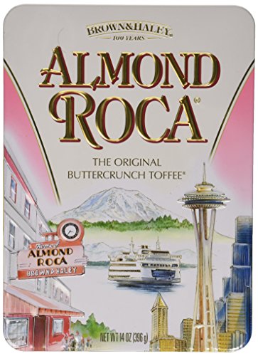 In 1912, Harry Brown & J.C. Haley founded Brown & Haley in Tacoma, Washington. They quickly created Classic ALMOND ROCA  Buttercrunch combining premium California almonds and pure vanilla with fresh neighborhood butter and our Signature Blend of cocoa beans for an irresistible taste sensation of buttery goodness. one hundred years later on, ALMOND  Buttercrunch has turn out to be an icon of the Pacific Northwest. Please join us in celebrating everything that helps make the Pacific Northwest unique with this specialty collector\'s tin featuring landmarks this kind of as the Area Needle, Pike\'s Place Market, the Museum of Glass and the Lemay - America\'s Vehicle Museum. Each resealable tin contains individually foil wrapped pieces sealed in an airtight pouch for freshness. This centennial tin is perfect for giving as a particular present.