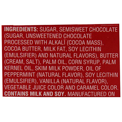 - Rich buttercrunch toffee center with dark chocolate coating and peppermint