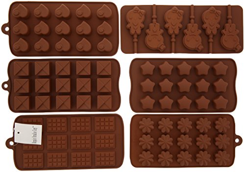 - 6pc VALUE PACK SET, Flexible, Sturdy and Non-Stick, So many designs with total 78 cavities, (Package comes with 5pc different shape Chocolate candy molds and 1pc lollipop mold with 30 lollipop sticks)