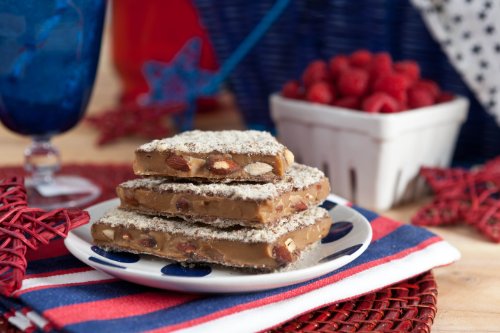 Our all-natural, World Famous Almond Toffee is crafted from a ideal mix...fresh California almonds, sweet cream butter and pure cane sugar, covered in a generous layer of rich chocolate and sprinkled with crushed almonds