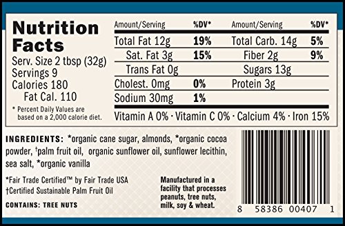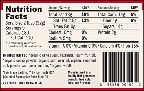 - Made with fairtrade and organic: cocoa, cane sugar and vanilla, product certified by fairtrade usa