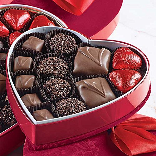 Valentine\'s Day Chocolate Assortment Assortment. Handmade Variety of Chocolate Favorites consists of Double Chocolate French Truffles, Bear Claws, Raspberry Cremes, Vanilla Caramels and Milk Chocolate Hearts. Tasty Chocolates arrive in a Striking Keepsake Heart Shaped Present Box in Red Velvet and Satin with a gorgeous Satin Bow. Display your Valentine the extent of your enjoy with this a single-of-a-variety assortment. Manufactured in USA.