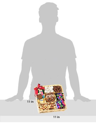 A welcome and wonderful gift basket. Divided into five generous compartments, this decorative 10\" tray comes with chocolate enrobed nuts, yogurt pretzels, almond pecan caramel popcorn, Bavarian pretzels smothered in chocolate, Ghirardelli chocolate squares, and chocolate covered nuts. A unique Kosher gift idea!