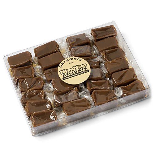- Savor the taste of handmade gourmet caramels that are soft and chewy with a delectable buttery flavor. Includes 24 individually wrapped NomNom Delights caramels conveniently packaged in a box and perfect to give as a unique gift or enjoy for yourself.