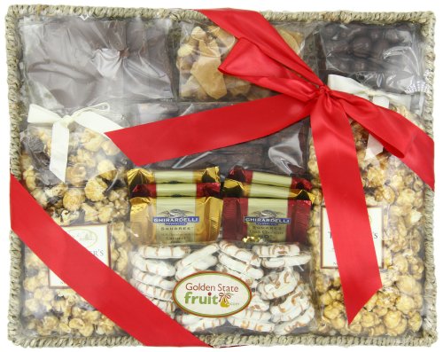 - A decadent snack gift basket of caramel, chocolate and crunchy gourmet treats