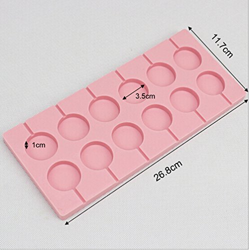 Crystallove 12-Capacity Round Silicone Lollipop Mold with Sticks for Baking Hard Candy Chocolate (Pink, 1pcs)