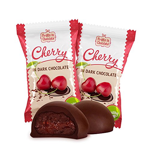 • Delicious dark chocolate covered Cherries, 75 calories per piece (Aprox. 25 pcs per package)