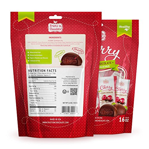 Chocolate Coated Fruits & Nuts Dark Chocolate Covered Cherries, 16 Oz Bag Dark Chocolate Covered Cherries, Individually Wrapped in a sixteen oz Stand-Up Bag. Just when you believed it could not get any far better we bring you the cherry on best, or rather in the center. From the Pacific Northwest, our sweet dark cherries bathed in premium dark chocolate supply a heavenly blend of flavors that are confident to elevate your spirit! Supplying better value, our 16 oz. Stand-Up pouch is filled with 25 pieces generating it the appropriate selection for snack lovers. $15.99 http://ecx.images-amazon.com/images/I/61AY-DgVAkL._SL160_.jpg