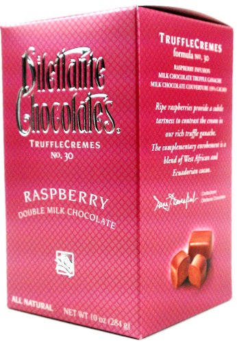 - Includes one 10 oz package of Dilettante Chocolates Raspberry Double Milk Chocolate TruffleCremes No. 30
