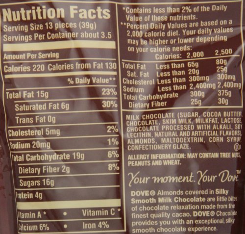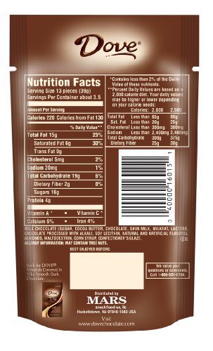 Dove almond candy, 4.5-ounce packages (pack of six) lets you take pleasure in entire roasted almonds surrounded by Dove wealthy dark chocolate. These chocolate covered almonds are excellent for nibbling. Hold these almonds on hand for all events, especially to share with loved ones and close friends!