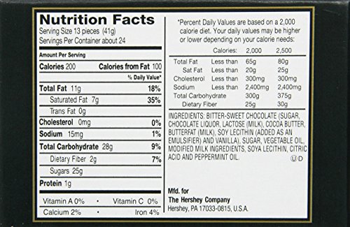 Your following meal deserves an ovation: Hershey\'s Ovation Dark Chocolate Mint Sticks. Luscious dark chocolate envelops a refreshing mint center for the excellent two-bite indulgence. Offer you Hershey\'s Ovation Dark Chocolate Mint Sticks to dinner guests, get a few with you for a night on the town, or just get a box of these tough-to-locate treats and savor every time the mood strikes.
