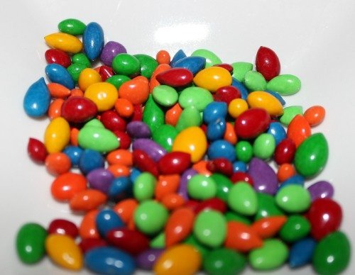 - Sunflower seeds coated with chocolate and enrobed in a crunchy candy coating