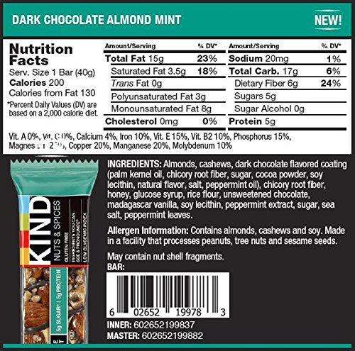KIND Nuts and Spices Bars, Dark Chocolate Almond Mint, 1.4 Ounce, 12 Count