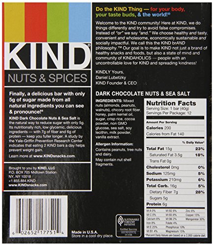 KIND Nuts & Spices, Dark Chocolate Nuts & Sea Salt, 1.4 oz., 12-Count Bars Rating: