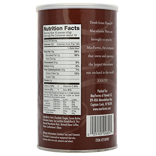 Kona Coffee Dark Chocolate Macadamia Nuts, 100% Hawaii Grown, 1.75 Lb Re-Sealable Can