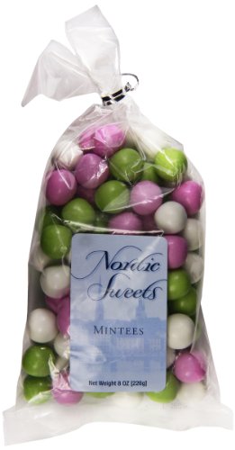 Every person loves these small round candies with peppermint centers surrounded with chocolate and covered with white, pink and green candy coatings. Imported from Denmark.