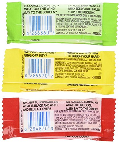 Laffy Taffy is Willy Wonka\'s favored taffy. It is accessible in fruit flavors and each and every wrapper comes with a joke. Flavors include sour apple, cherry and banana. Acquire in bulk and conserve cash. Around 45 pcs per pound. Wonderful candy that will be loved by children of all ages (and grownups too). Get pleasure from these sweet treats with several enticing flavors of the classic candy you crave. Individually wrapped, Kosher Certified. Objects are repackaged in a facility that may possibly incorporate milk, soy, peanuts, tree nuts, eggs, wheat and all other allergens.