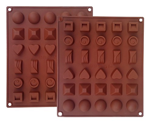 Ozera Silicone Chocolate, Jelly and Candy Mold, Cake Baking Mold, 30-Cavity, Set of 2, Brown