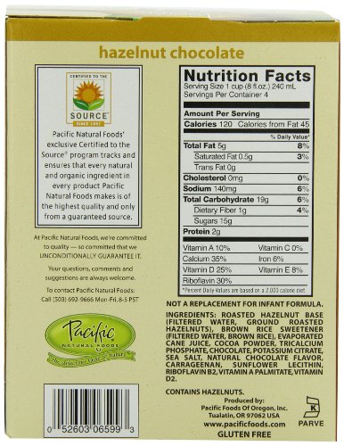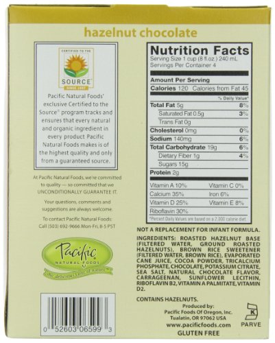 Pacific Natural Foods Hazelnut Non-Dairy Beverage, Chocolate, 8-Ounce Containers (Pack of 24)