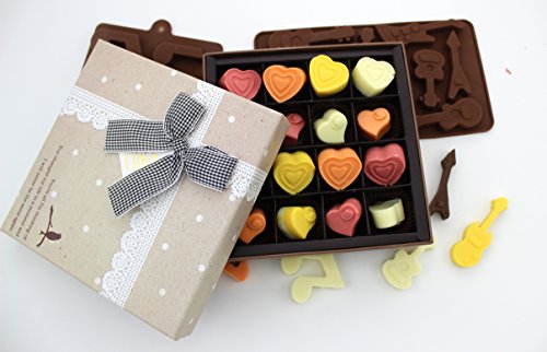 Chocolate Molds Set of 6 Non-stick Silicone Chocolate Candy Making Mold Tray - Romantic Music with Guitar and a Bunch of Roses for Your Sweet Love Anfimu Non-stick Silicone Candy Pastry Chocolate Making Molds Tray Set of six - Like Romantic Love Heart, Music, Guitar, Rose Shapes - Great for Creating Homemade Cake, Candy, Chocolate, Gummy, Ice, Crayons, Jelly, and More $14.99 http://ecx.images-amazon.com/images/I/51pmGn4as5L._SL160_.jpg