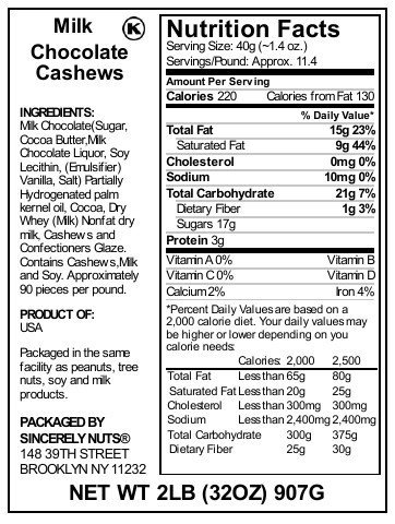CRUNCH Soon after CRUNCH OF SCRUMPTIOUSNESS...We ensure that every single bag is perfectly sealed so as to protect the sanctity of the crunch. And all our items are 100% Kosher, so everybody can encounter this Oscar-worthy deal with. Candid Confessions! Everyone is going sincerely nuts above these chocolate cashews! Here\'s what toonadude had to say soon after composing himself: \"I purchased a bag of these for my mother. She gave me some and WOW! These have to be the greatest chocolate covered cashews I have ever tasted. They look to have been double dipped to as there is a good deal of chocolate covering. Deal with yourself and consider these.\" Not Convinced? Right here are few notable rewards of Sincerely Nuts Milk Chocolate Cashew: - Definitely mouthwatering taste. - Fresh and crunchy. - Sizeable proportions to offer you unmatched worth. - one hundred% Kosher certified. - Wholesome dose of nutritional vitamins and minerals. Want to know what a genuinely delectable wholesome treat tastes like? Then click \"Add to Cart\" now!