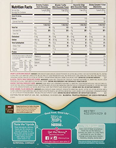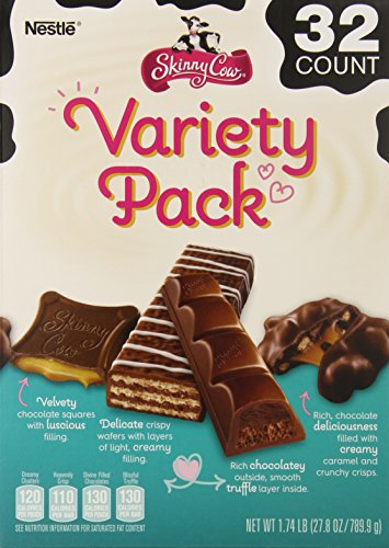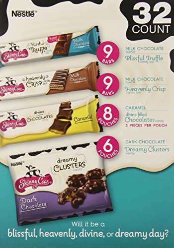 Chocolate Truffles Skinny Cow Variety Pack, 32 Count Dark chocolate blissful truffle (9 candy bars). The other flavors still incorporate - milk chocolate heavenly crisp (9 candy bars) caramel divine filled chocolate (eight pouches with 3 candy pieces). $26.72 http://ecx.images-amazon.com/images/I/51N0fCcFB8L._SL160_.jpg