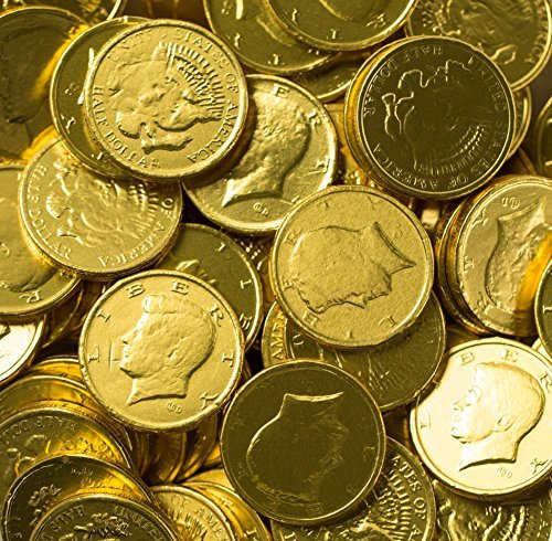 - 2 Pounds Approximately 128 Pieces. Large Kennedy 1/2 Dollar Gold Foil Covered Milk Chocolate Coins.