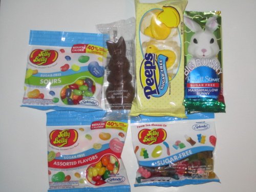 This Sugar totally free diabetic candy Easter bundle consists of a two.5 oz. reliable chocolate bunny. 1 pack of Peeps, one bag of gummy bears, 1 bag of jelly beans, one bag of jelly bean sours, and 1 chocolate covered marshmallow bunny. ALL SUGAR Free of charge