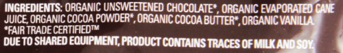 - Made with unsweetened chocolate, organic evaporated cane juice and organic vanilla