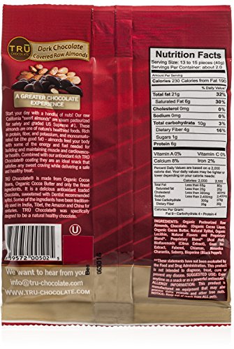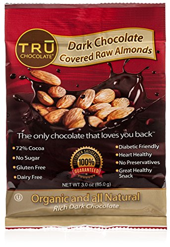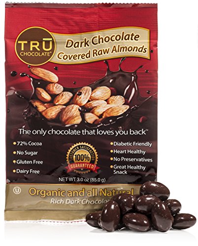 Tasty, Healthy, Organic, And Rich Dark Chocolate Covered Raw Almonds by TRU Chocolate® Snacks, The ONLY Chocolate That Loves You Back Dairy, Gluten and Sugar Free Snacks