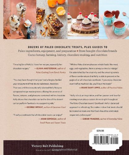 The Paleo Chocolate Lovers Cookbook characteristics 80 gluten-, grain-, and dairy-totally free recipes for the overall health-conscious chocolate lover. Kelly Brozyna, host of the delightful cooking weblog, The Spunky Coconut, has designed scrumptious chocolate treats made with coconut and ground nut flours for both breakfast and dessert. And, utilizing dates and modest amounts of the herbal sweetener stevia in these nutrient-dense baked products, she displays you how to preserve the honey and coconut sugar to a minimal.Recipes include: Chocolate Crepe Cake with Coconut Cream, White Chocolate Dipped Macadamia Biscotti, Homemade (dairy-free, minimal-glycemic) chocolate bars, Chocolate Swirl Cheese Danish Cake, Lava Cakes, Dark Chocolate Hazelnut Cookies, White Chocolate Truffles, Molten Chocolate, Cherry Cordial Fudge, and a lot more.This book also details the elements of chocolate--the importance of natural and fair trade chocolate, regularly asked questions about chocolate, and a side-by-side comparison of store-purchased dark chocolate bars.