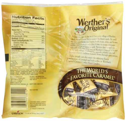Chocolate Caramels Werther's Original Caramel Coffee Hard Candies, 5.5-Ounce Bags (Pack of 12) A long time ago, in the little European village of Werther, candy-maker Gustav Nebel designed his finest candy. He utilized the best substances – real butter, fresh cream, white and brown sugars, a pinch of salt and a lot of time – to produce a treasure worthy of getting wrapped in gold. Since they turned out especially properly, they were named Werther’s Unique in honor of the minor village. Crafting this smooth, creamy caramel grew to become a family members tradition handed down via generations. Today, individuals everywhere get pleasure from the exclusive taste of Werther\'s Unique, the very best-selling caramel in the world. $22.69 http://ecx.images-amazon.com/images/I/51sFG6xsEdL._SL160_.jpg