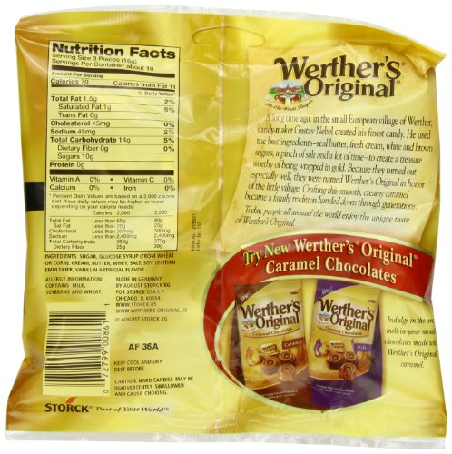 A prolonged time ago, in the little European village of Werther, candy-maker Gustav Nebel developed his finest candy. He employed the greatest components – genuine butter, fresh cream, white and brown sugars, a pinch of salt and a great deal of time – to generate a treasure worthy of getting wrapped in gold. Since they turned out specifically well, they had been named Werther’s Unique in honor of the minor village. Crafting this smooth, creamy caramel grew to become a loved ones tradition handed down via generations. Right now, individuals all over the place enjoy the special taste of Werther\'s Authentic, the very best-offering caramel in the planet.