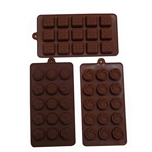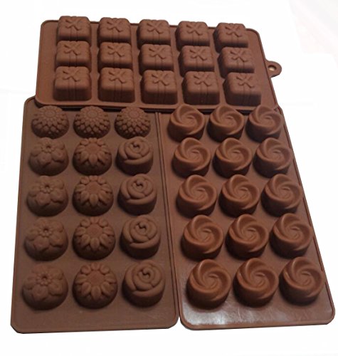 Yunko Set of 3pcs 15-cavity Chocolate Silicone Mold Ice Cube Candy Dessert Jello Mould Flower Gift Box